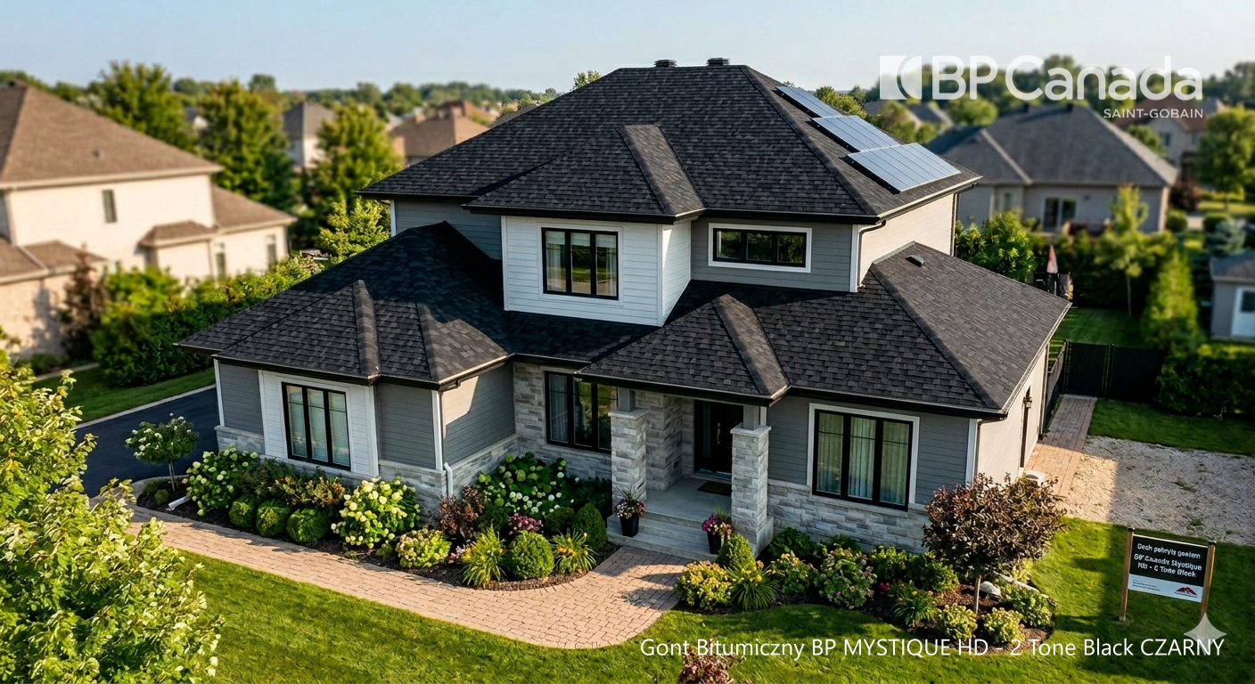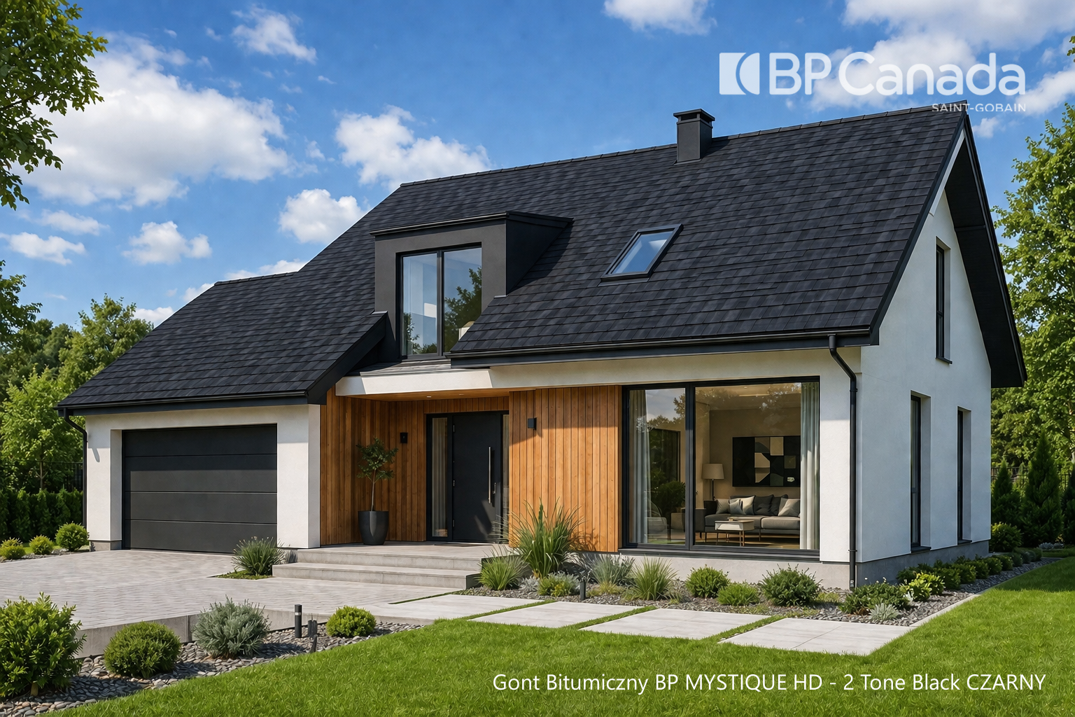 Etykiety: gont bitumiczny, gont BP Mystique HD, BP Canada, gont laminowany, gont kanadyjski, pokrycie dachowe, dach, gont premium, szczelny dach, odporność na wiatr 220 km h, podwójne uszczelnienie, dwa pasy kleju, większy format 17 procent, dach bez przecieków, materiały dachowe, budowa domu, dach domu jednorodzinnego