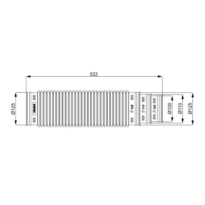 Elastyczny jednolity przewód Ruroflex 125 umożliwia podłączenie kominków do przewodów wentylacyjnych za pomocą redukcji o średnicach 100mm, 110mm, 125mm. Montaż bezpośrednio do rury kominka lub wcześniej założonego skraplacza. Przewód dedykowany do systemów: WiroVent®EVO, WiroVent®PRO oraz WiroVent®PLUS, montaż przy pomocy opasek zaciskowych nierdzewnych, stanowiące osobne produkty.