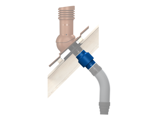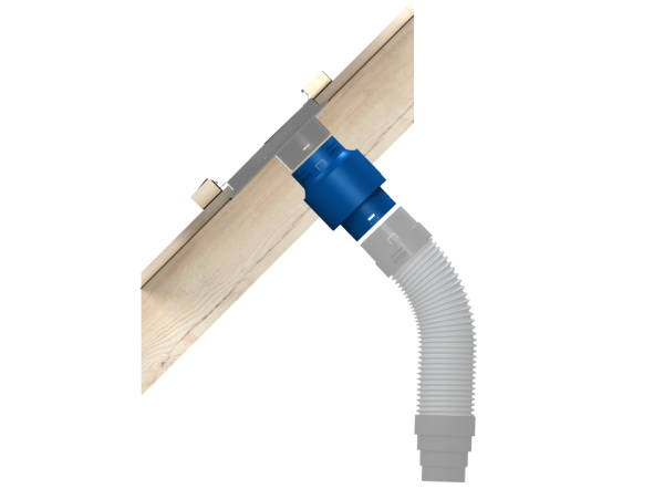 –  montaż na CLICK do rury kątowej kominka, króćcem odpływowym od spodu