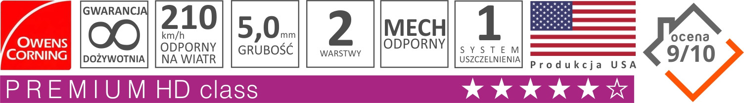 Gont bitumiczny OAKRIDGE Premium HD to laminowane, dwuwarstwowe pokrycie dachowe marki Owens Corning. Dzięki zaawansowanej konstrukcji i technologii klejenia zapewnia znakomitą wytrzymałość, stabilność wymiarową i odporność na ekstremalne warunki pogodowe. Seria Premium HD wyróżnia się eleganckim, trójwymiarowym wyglądem oraz bogatą paletą kolorystyczną — idealny wybór dla domów jednorodzinnych i inwestycji wymagających trwałego oraz estetycznego pokrycia dachowego.